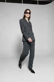 Grey Straight Trousers with Button Accent