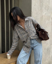 Oversized Plaid Cotton Shirt β Grey Tones
